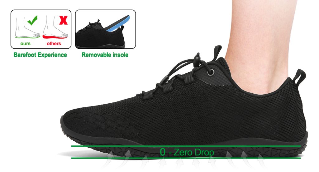 Zero-Drop-Barfußsohle: Geweo strebt nach einem natürlicheren und gesünderen Bewegungsstil mit Null-Drop-Barfußsohlen! Unsere Barfußschuhe bieten ein Barfußgefühl und haben eine Null-Drop-Sohle, bei der der Vorderfuß und die Ferse auf derselben Ebene liegen. Das verbessert das Gleichgewicht und stärkt die Fußmuskulatur. Außerdem bieten wir eine herausnehmbare Einlegesohle von 0,5 cm Dicke an. Wenn Sie kein Barfußgefühl wünschen, bietet die Einlegesohle normalen Schuhtragekomfort